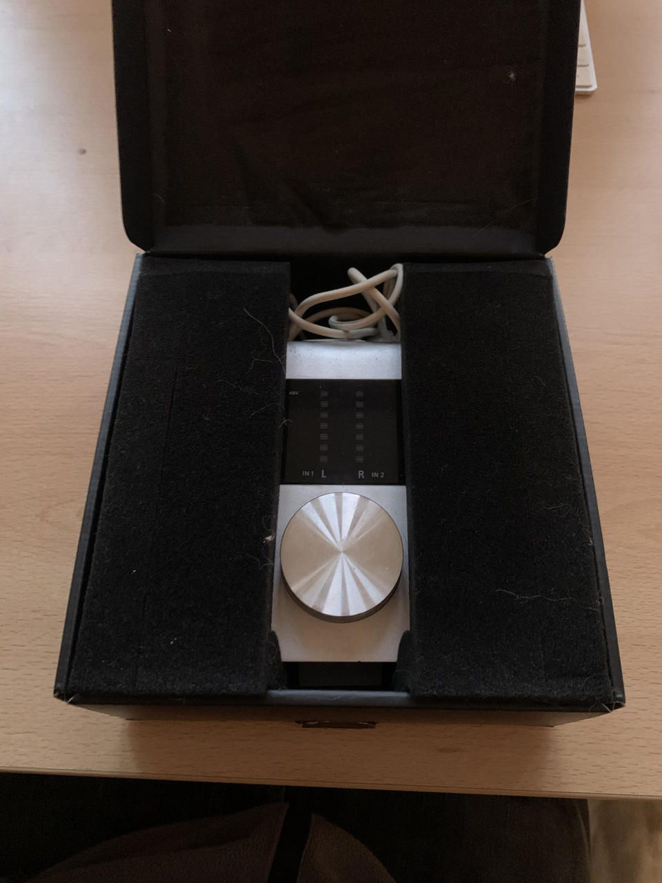kupovano z druhe ruky zastaralá ale funkční zvuková karta ovládání pomocí kliknutí hlavního knobu knob se pohodlně drží í otáčí Původní kabel je natržený viz foto ale funkcni KOMPATIBILNÍ POUZE S THUNDERBOLT PORTEM CENA DOHODOU