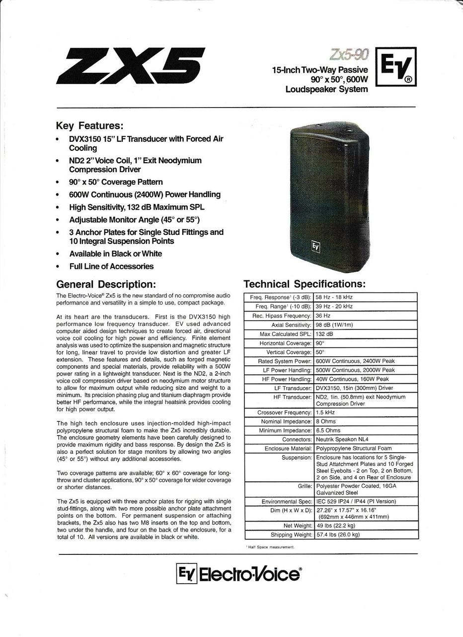 Prodám touringovou ozvučovací sestavu: • 2x Electrovoice ZX5, pasívní, 600 W / 2400 W peak, 8 Ohm ,...