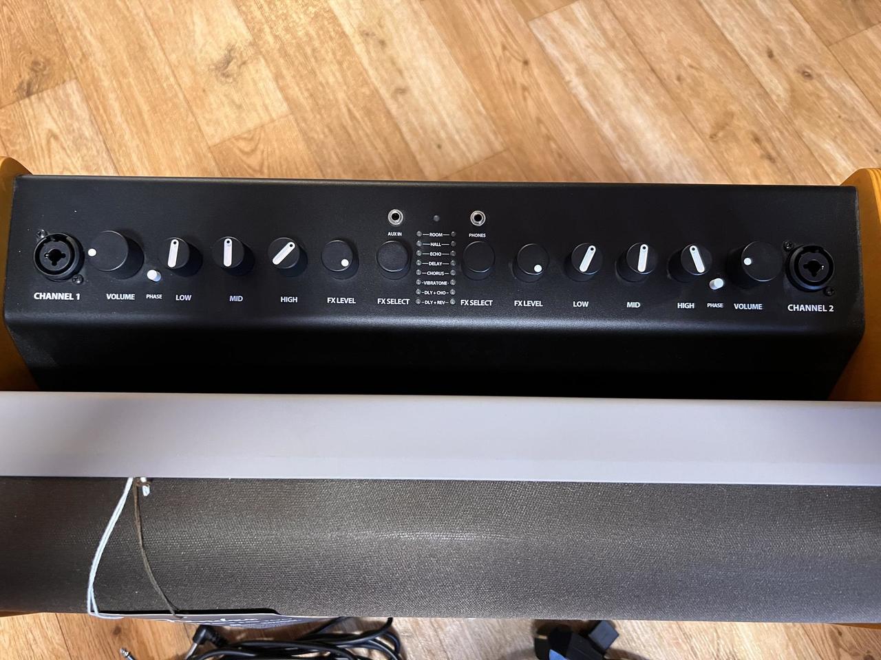 Prodám tranzistorové kytarové kombo LX20. Výkon 15W Čistý a zkreslený kanál Ekvalizér společný p...